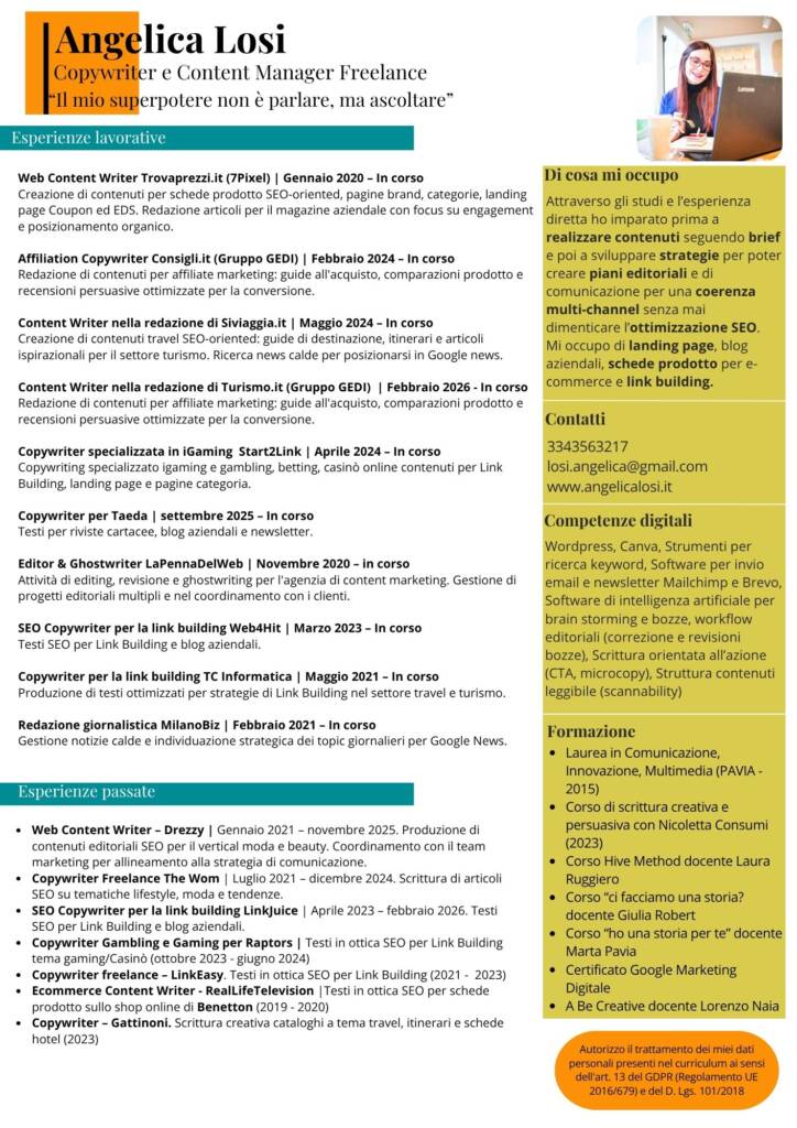 Ciao, vuoi scoprire di più sulle mie esperienze lavorative?