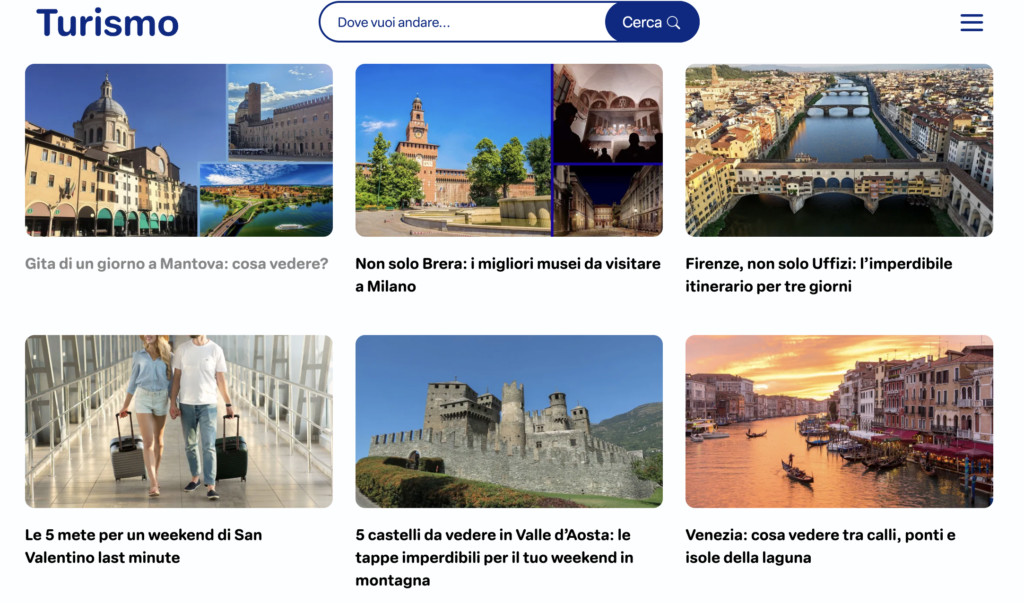 Per Turismo.it (gruppo GEDI) mi sto occupando della creazione di contenuti a tema viaggi con link di affiliazione seguendo un piano editoriale che mi viene assegnato settimanalmente.